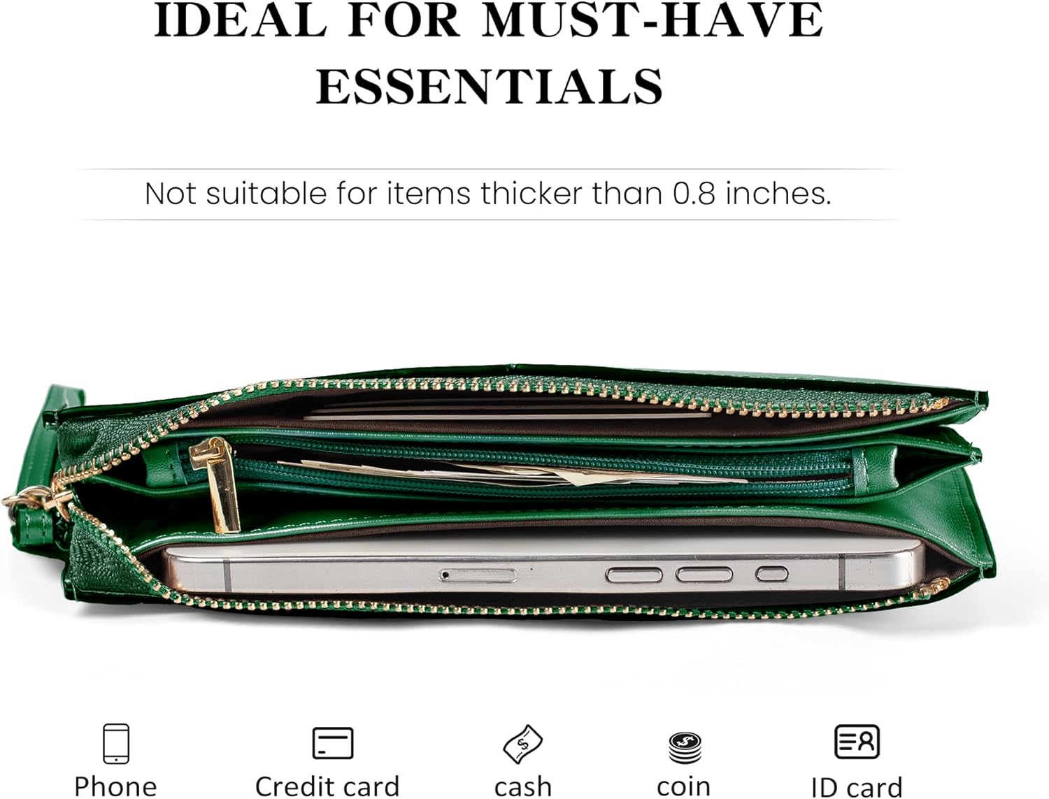 • SIZE FOR EVERY OCCASION: Measuring 8.1"(W) x 4.3"(H) x 0.45"(D) and weighing just 7 oz, befen ultra-slim wristlet bag is easy to carry anywhere and ideal for any event. Whether for a night out, shopping, or business meetings, it offers a stylish, lightweight solution that complements various outfits and fits seamlessly into any lifestyle