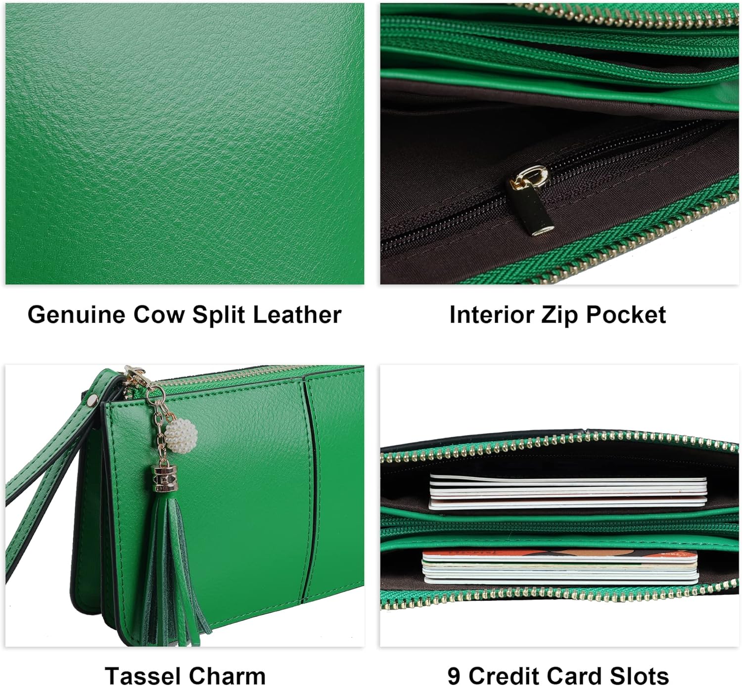 • POCKET-SIZED LEATHER WRISTLET: Featuring a 3-compartment and 9 card slots 2 zip pocket design, befen wristlet purses for women securely organizes your essentials while maintaining its slim profile (only 0.2in thick before use). Suitable for daily use, evening events, or keeping small items organized in a larger bag